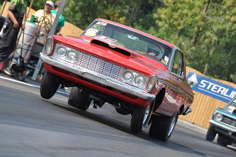 I am running a 1963 Plymouth Sport Fury from Arkansas, literally an older lady one owner car. The 63 body remains uncut, with no light weight panels other than an aluminum front bumper to loose some weight off of the nose of the car. The original 318 was changed over to a 440 and an original stage III manifold, which put the car in the 12.0 class. I have since put in a 500 inch motor, and now run into low-mid 11's. Out back I am running slightly narrowed 9 inch rear with 4.10 gears and 28 X 10.50 tires.