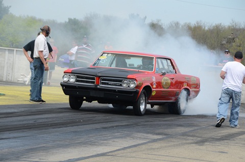 The Championship car is a 1964 Pontiac Lemans owned by Dan Driscall. It is powered by a 455cu Pontiac with a set of eldebrock aluminum heads prepped by Hill Performance. The trans is a turbo 400 with a 3000 stall converter.The rear end is a ford 9" with a 430 gear,all from Victory Performance Parts.